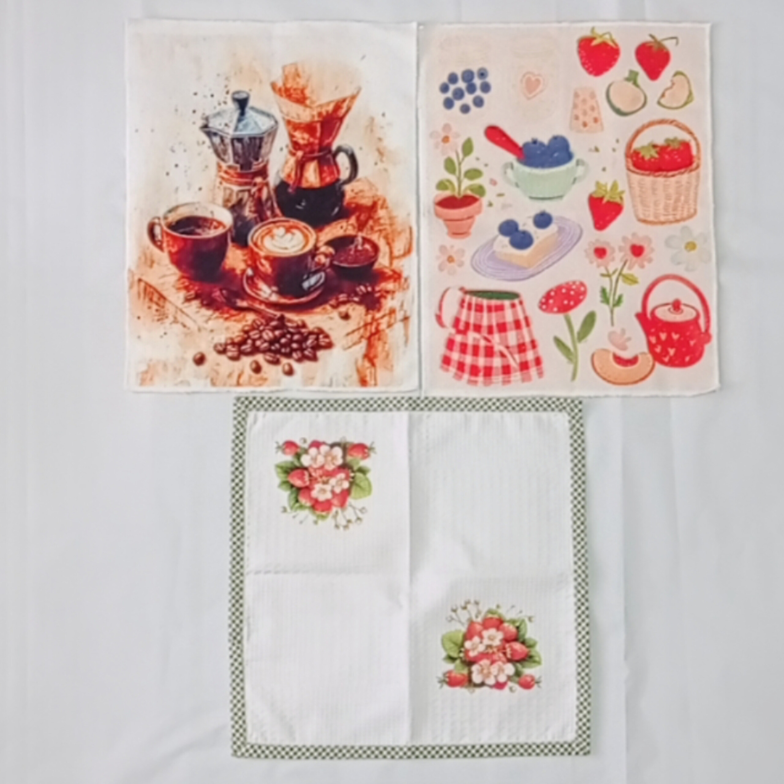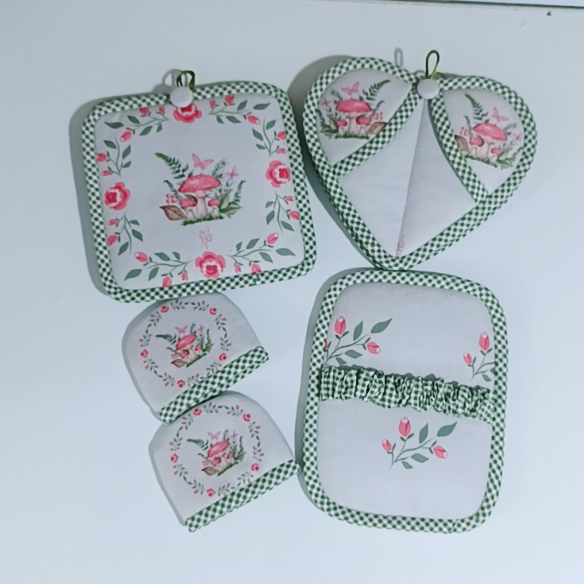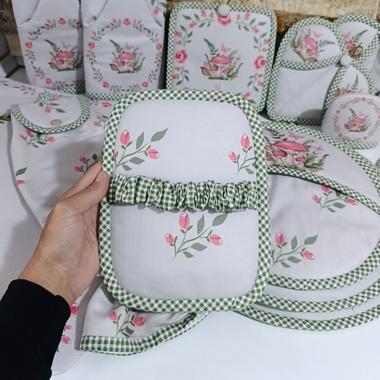 یک جفت دستگیره مربعی ،یک جفت دستگیره قلبی ،یک جفت دستگیره چدن ،،کیسه سبزی ،حوله آشپزخانه ،سفره پاکن